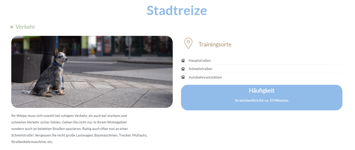 Auch die Umweltsozialisierung ist ein besonders wichtiges Thema während den jungen Lebensmonaten. In dieser Lebensphase sollte der Welpe möglichst viele neue Dinge behutsam kennenlernen, z.B. Bus fahren, andere Tiere im Wildpark uvm. Denn unsere hektische Welt bietet viele Umweltreize, die der junge Welpe noch nicht kennt. Hier finden Sie die wichtigsten Themen rund um die Umweltsozialisierung, die Ihr Welpe kennenlernen sollte, um zu einem entspannten und unerschrockenen Hund heranzuwachsen.